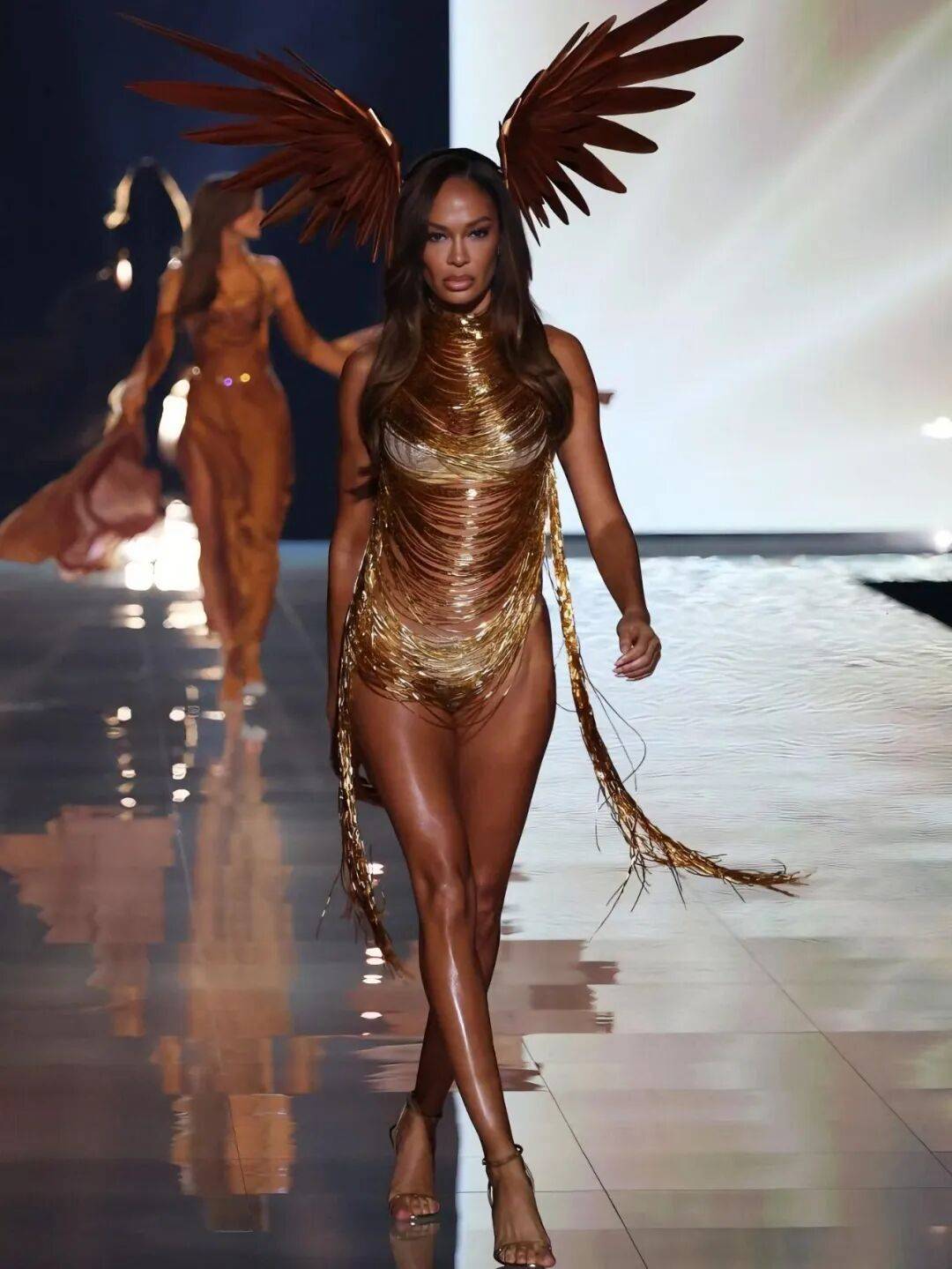 这次维密大秀也迎来首位职业运动员的加盟,00后美国职业篮球运动员Angel Reese首次走秀就佩戴了维密翅膀,首次让“运动员”身份披上天使羽翼,把“女性力量”从口号写进视觉。