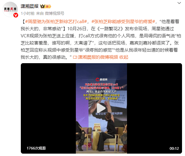 10月26日,在《一路繁花2》发布会现场,周星驰通过VCR视频为张柏芝送上应援,打call方式很有他的个人风格,是用调侃的语气说“柏芝比较害羞是,谁写的啊,太离谱了”,这句话把现场,嘉宾刘嘉玲都逗笑了。张柏芝回应称从视频中感受到星爷“很疼我的感觉”“他是从我很年轻出道的时候看着我长大的,真的很感动。”